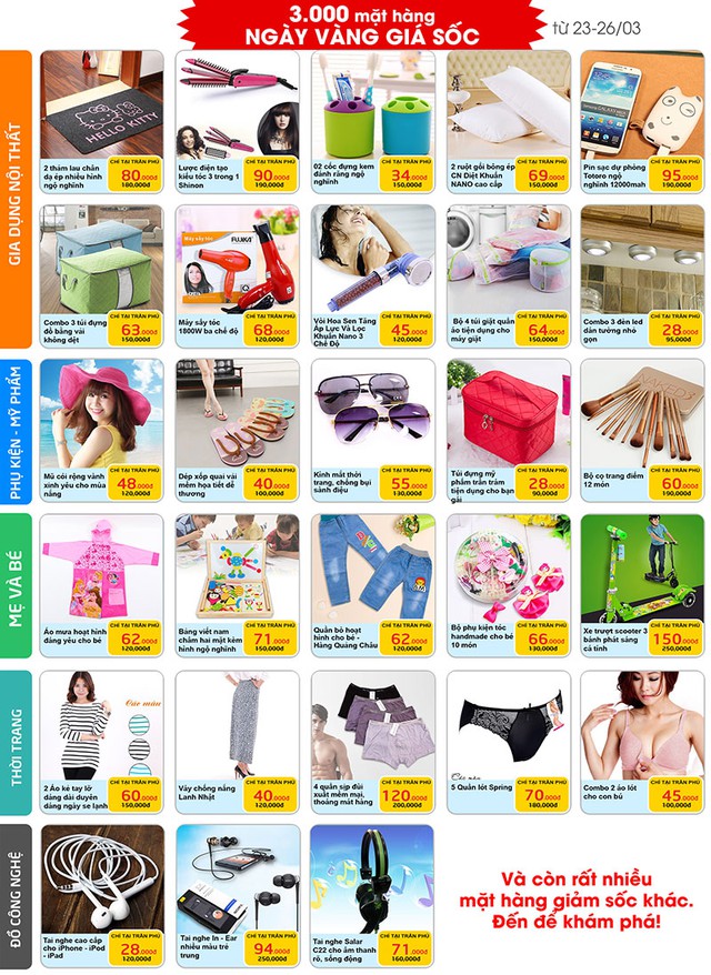 Một vài mặt hàng giá sốc trong chương trình Ngày vàng giá sốc.