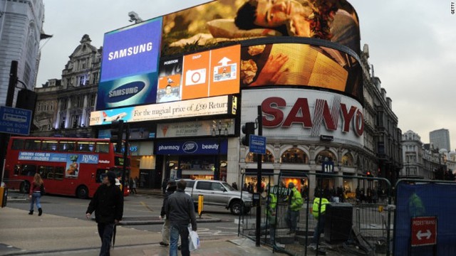 Tấm biển quảng cáo của Sanyo ở London, Anh tối đèn. Ảnh: CNN