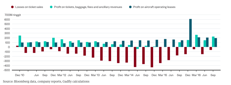 Nhìn chung về tổng thể toàn công ty, Airasia kiếm được nhiều tiền hơn từ hoạt động bán và cho thuê máy bay chứ không phải hoạt động bán vé.