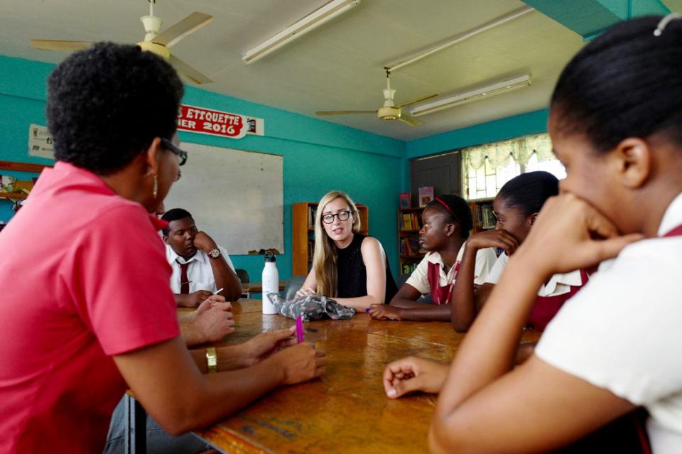 McDavid trong một cuộc trò chuyện với sinh viên Jamaica